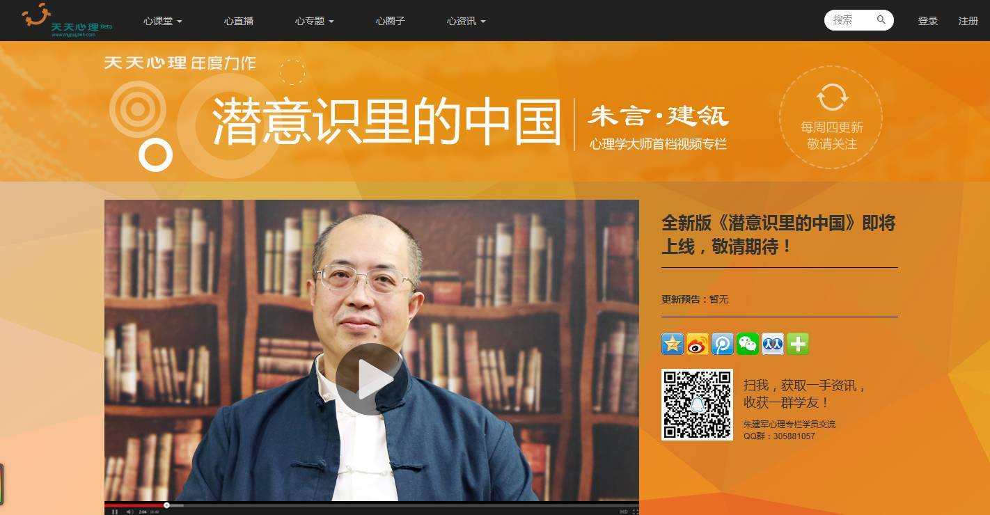 12月10日,著名心理学家朱建军教授的视频专栏“潜意识里的中国”第二季在天天心理网正式上线。栏目一更新收视率立刻飙升至网站第一名。