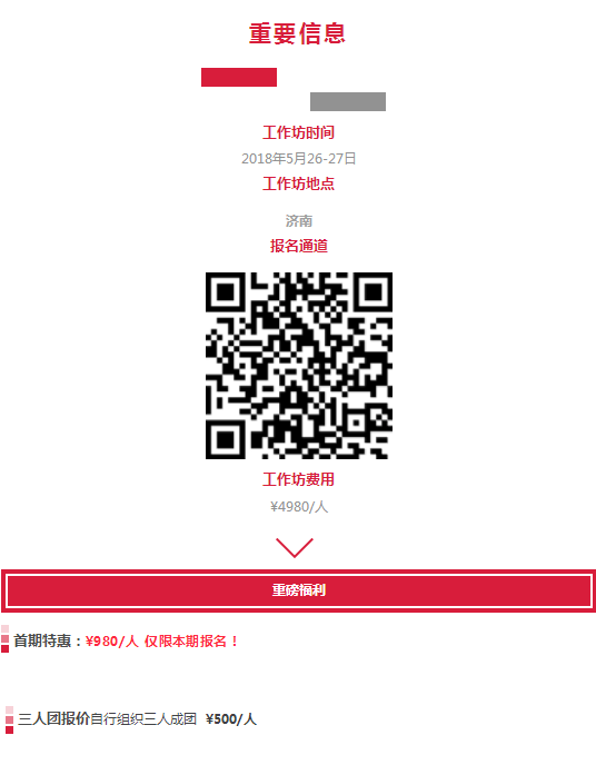 4.工作坊原价4980/人,限额特惠仅需980/人(仅限前100名),三人团购500元/人(请联系客服);