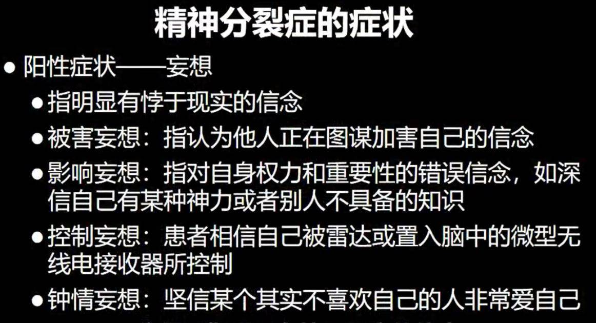 阳性症状的第二种妄想有关系,妄想先说妄想,妄想是指明显有勃于现实的信念,这些患者坚信一件事情,但是客观来讲不太可能是这样的,这个就叫做妄想,最常见的妄想基本上就是以下四种。一个个给大家讲解一下,最多见的几乎就是被害妄想,指的是认为他人正在图谋加害自己,很多患者都会有这个症状,其实我本人就经历过,像