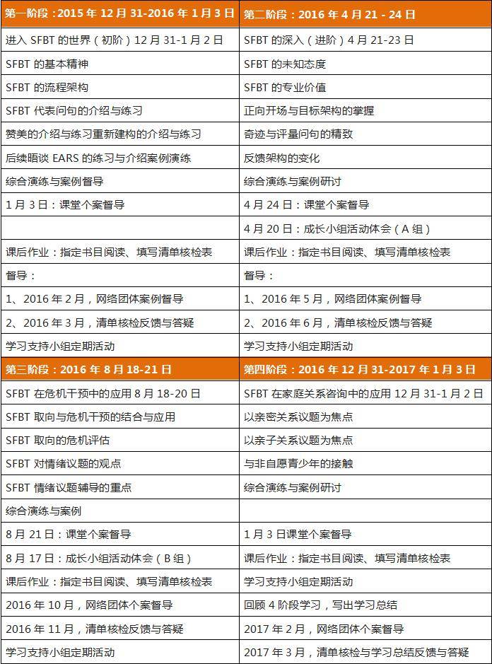 四、SFBT高级研修班课程体系(4天/阶段)