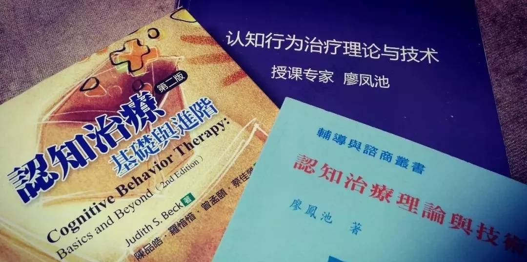 一本教材是Judith S.Beak所著的《认知行为治疗基础与进阶》,另一本教材是廖凤池教授所著的《认知行为治疗理论与技术》——廖老师的硕士论文,当年被评获优秀论文奖。另有带有若干授课内容、练习表格的讲义一本。
