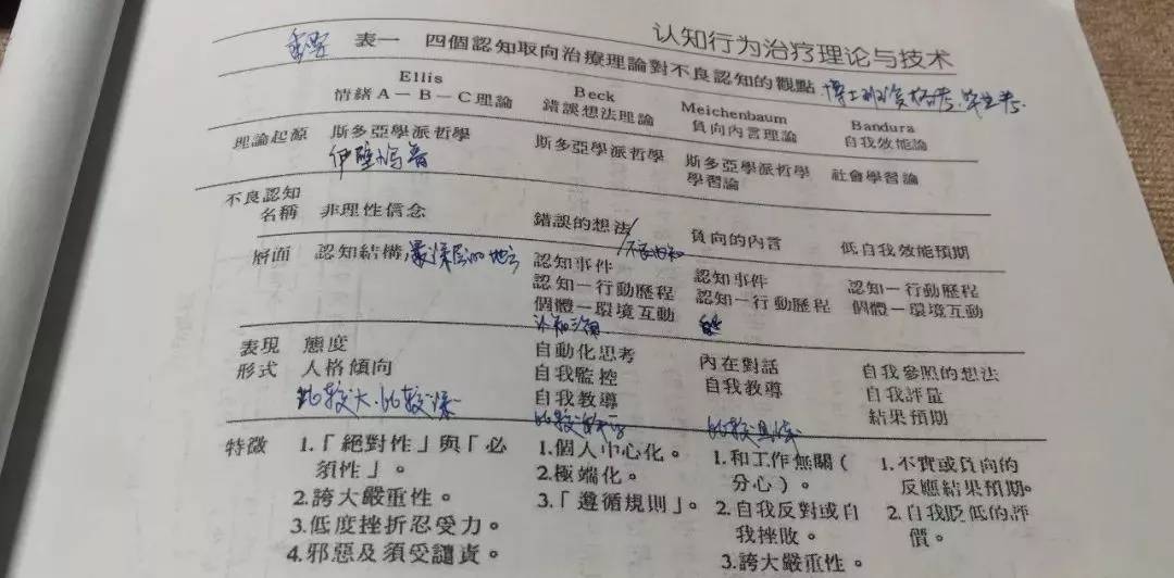 几天下来,我也感觉认知行为治疗挺难的,大概因为内容太丰满了吧。此课程疗法多、名词多、流程多、步骤多、句式多、表格多……课后要写作业,上课做演练,最后一天还有个案讨论……脑瓜真的不太够用。