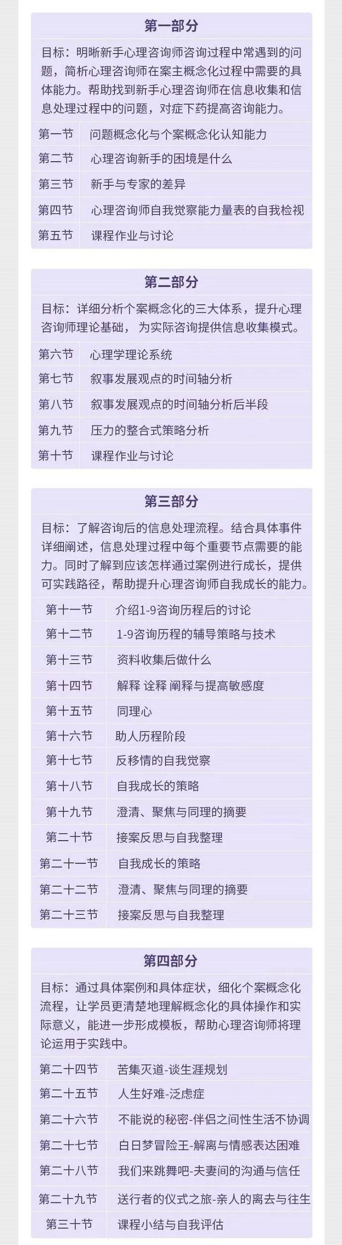 如果你也遇到了心理咨询中的“鬼打墙”情况,不知道怎样判定心理咨询事宜的范围,不知道怎样具体化、概念化来访者的问题,欢迎大家试听课程。
