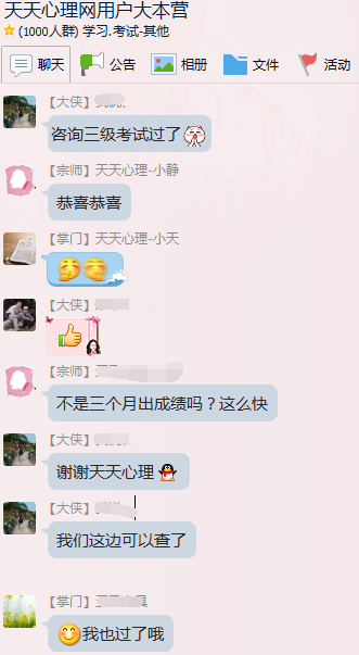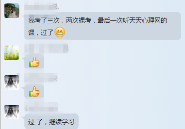 任何网络学习的困难都包括“难以坚持”这一点。所以针对《心理咨询师二三级备考全套视频》这套课程的学习之余,我们建立了备考学习群,通过辅导员每天的习题测试,及时巩固每个人的学习效果。