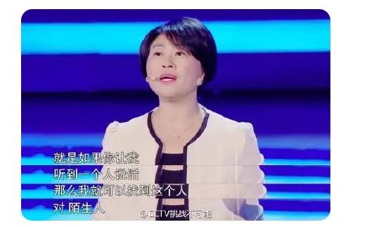 在《挑战不可能》节目中,四川大学的王英梅博士凭借“通过声音倒推影像”的“听音识人”绝技完成挑战,仅凭说话人的声音和3个问题,准确猜出对方长相!